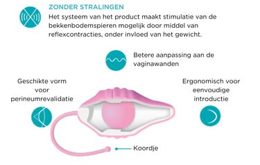 De PELVI’TONIC+ zal de spieren die instaan voor de tonus van de bekkenbodem stimuleren dankzij reflexsamentrekkingen onder invloed van zijn gewicht. Het perineum bestaat voor 80% uit reflexspieren.
